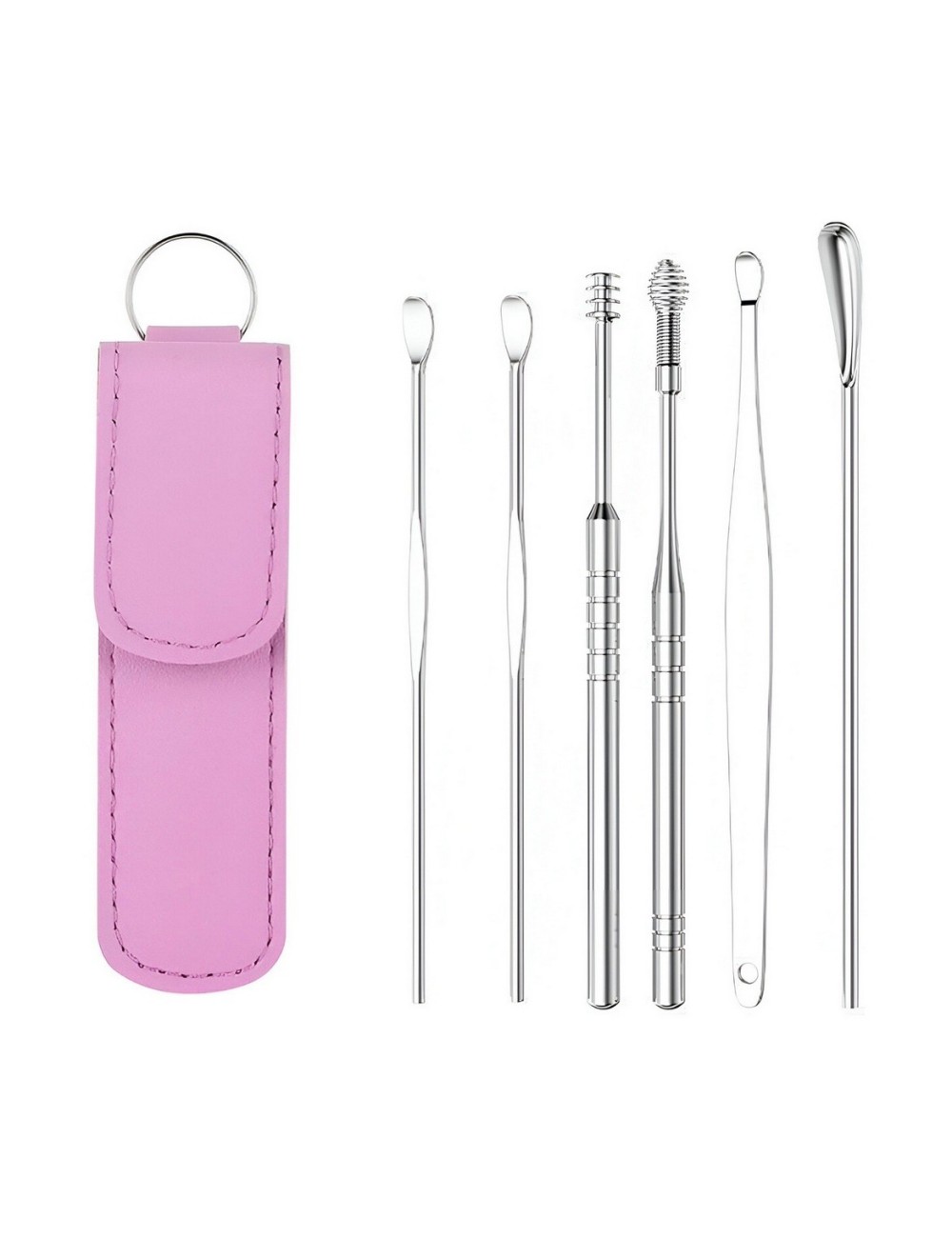El Set Kit de Limpieza e Higiene para Oídos 6 en 1 es una solución práctica y reutilizable para mantener tus oídos limpios de forma segura y eficaz, ya que incluye herramientas de acero inoxidable de alta calidad, resistentes a la corrosión y fáciles de desinfectar. Cada limpiador cuenta con un diseño ergonómico que permite eliminar suavemente tanto la cera blanda como la dura, sin empujarla hacia el interior del oído, brindando además una agradable sensación de masaje. Incluye una herramienta con resorte y espiral que ayuda a aliviar la picazón mientras limpia. Su presentación en un estuche portátil de cuero lo convierte en una opción ideal para el uso diario, viajes o incluso como un regalo útil y elegante.