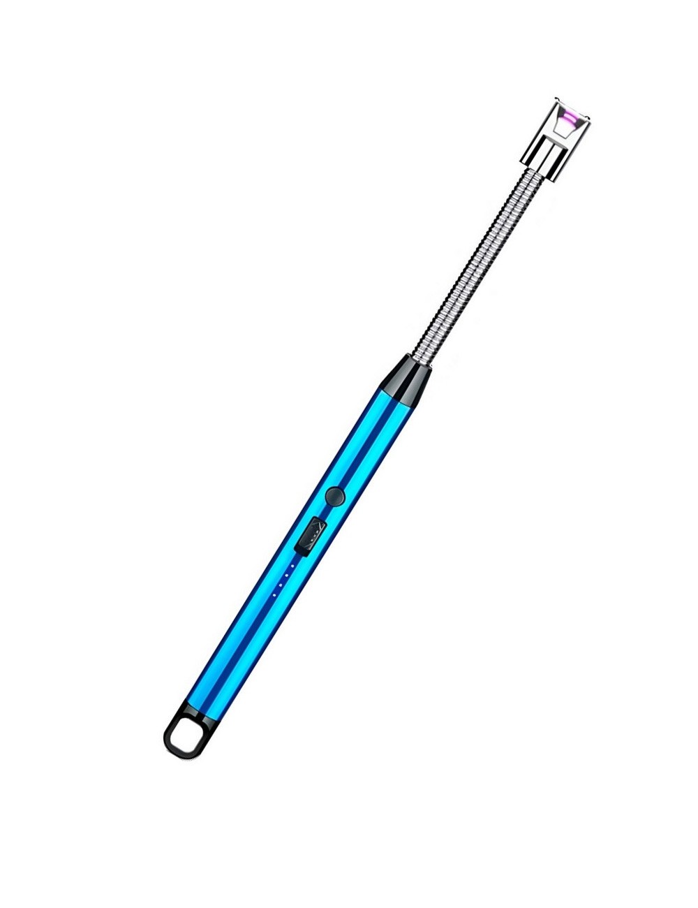 Encendedor eléctrico recargable con cuello flexible y tecnología de arco de plasma, ideal para encender velas, estufas, parrillas y fuegos sin necesidad de gas ni llama. Seguro, resistente al viento y con indicador LED.