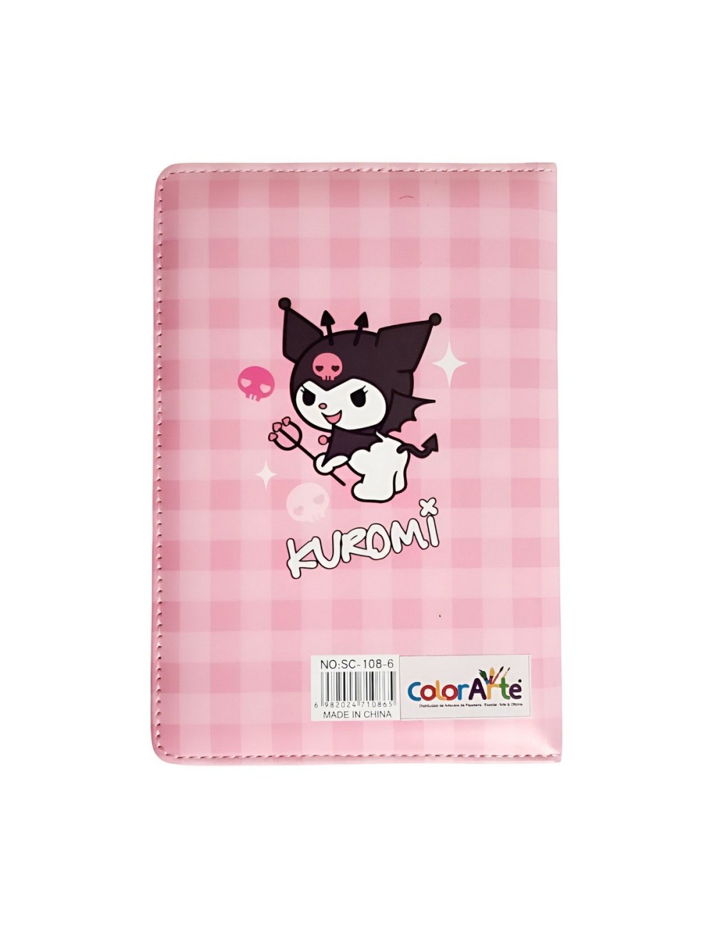 Hermosa libreta de notas con diseño de Kuromi, ideal para quienes disfrutan de un estilo tierno y divertido; cuenta con tapas duraderas en decoradas con ilustraciones del personaje y páginas internas con líneas y detalles gráficos que hacen más agradable la escritura, perfecta para tomar apuntes, anotar ideas o usar como diario personal, combinando practicidad con un atractivo diseño coleccionable.