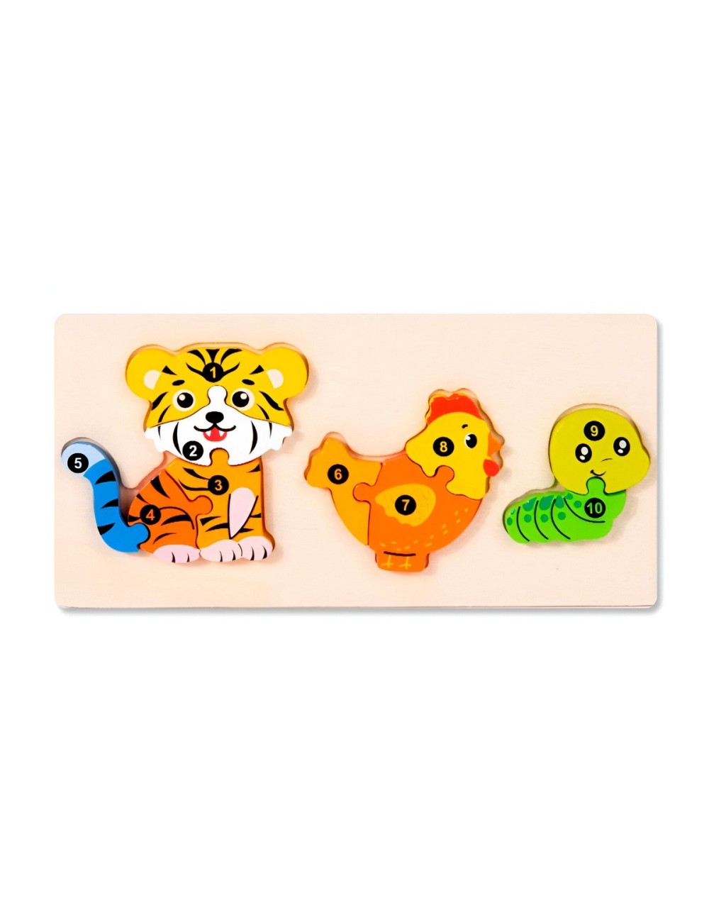 ¡Despierta la curiosidad de tu pequeño con este ingenioso rompecabezas de madera que combina el juego con el aprendizaje de los números! Este tablero multifacético presenta el desafío de armar no una, sino las figuras de varios simpáticos animales, cada uno compuesto por piezas únicas y coloridas. La característica principal de este juguete educativo es que cada pieza está numerada del 1 al 10, convirtiendo la actividad en una divertida introducción al conteo y la secuencia numérica. Mientras tu hijo se concentra en encajar las robustas piezas para formar cada personaje, estará desarrollando habilidades clave como la motricidad fina, la coordinación y la resolución de problemas. Es la herramienta perfecta para que los niños exploren, aprendan y jueguen, todo al mismo tiempo.