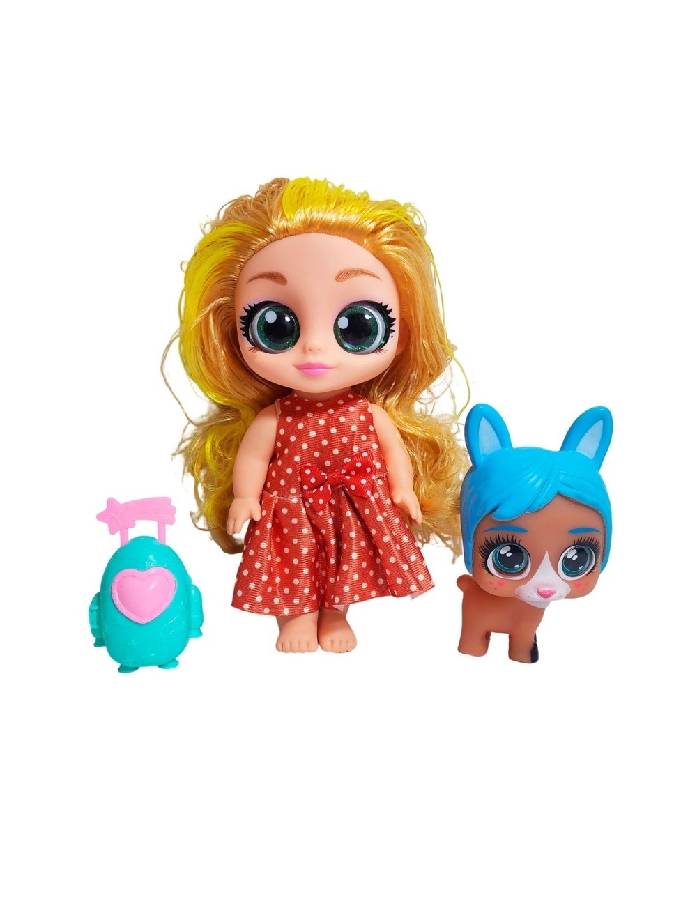 Esta muñeca de gran estilo y ojos brillantes llega acompañada de su adorable mascota y un accesorio sorpresa, ideal para que los niños inventen historias llenas de moda y diversión; su cabello y vestido con detalles llamativos inspiran creatividad al peinarla y cambiarla de escenario, convirtiéndola en una compañera perfecta para el juego imaginativo y una fantástica opción para regalar y coleccionar.
