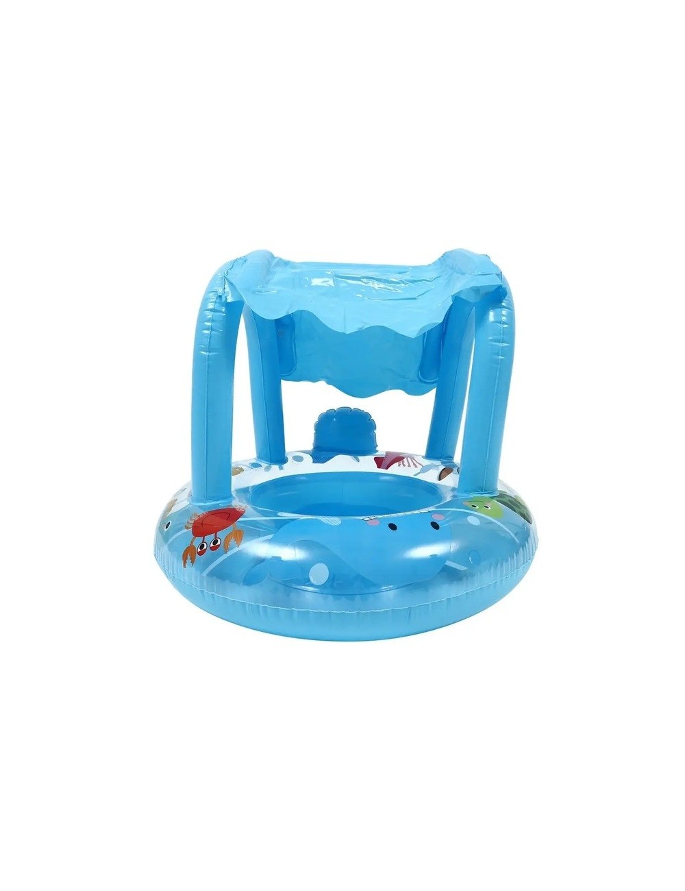 Flotador inflable para bebé diseñado para brindar mayor comodidad y estabilidad mientras los pequeños disfrutan del agua en piscina o playa, fabricado generalmente en PVC resistente y ligero que permite inflarlo y desinflarlo fácilmente para transportarlo o guardarlo; cuenta con asiento tipo pañal con orificios para las piernas que ayuda a mantener al niño en una posición segura dentro del flotador, además de un techo inflable que funciona como parasol para reducir la exposición directa al sol durante el juego acuático. La decoración puede variar entre diferentes figuras infantiles de estilo caricatura que hacen el producto más atractivo visualmente, manteniendo siempre la misma función principal de apoyo a la flotación y diversión en el agua, recomendado para bebés y niños pequeños siempre bajo la supervisión de un adulto. Ficha Técnica: Material: Plástico resistente y seguro PVC Dimensiones del flotador: 55 cm x 55 cm x 50 cm Edad Recomendada: + 3 Referencia: 1343-49 Términos de garantía:Para defectos de fábrica o retractos: Por favor revise el producto apenas lo reciba y antes de usarlo. No aplican ley de retracto o defectos de fábrica luego de usar el producto. Se manejan máximo 5 días para reportar defectos de fábrica (por ejemplo, producto funciona mal, piezas faltantes, rotas, etc). Para hacer efectiva la devolución el producto debe devolverse con el empaque original, el cual debe estar en buen estado, incluir todos los documentos y las partes completas y sin daños.
