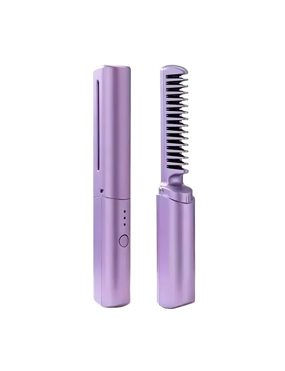 Logra un cabello liso, suave y sedoso en cualquier momento con este innovador peine alisador inalambrico, la solucion definitiva para eliminar el frizz y los enredos de forma rapida y profesional. Su avanzada tecnologia de calentamiento mediante pelicula termica ofrece cambios visibles a simple vista, proporcionando un brillo natural y una manejabilidad excepcional sin las limitaciones de los cables. Con tres niveles de temperatura ajustables (150, 160 y 180 grados), este cepillo termico se adapta perfectamente a diferentes tipos de cabello, desde el mas fino hasta el mas rebelde, garantizando un alisado uniforme gracias a su distribucion de calor balanceada. Su diseño ergonomico, ligero y compacto lo convierte en el compañero de viaje ideal para retoques de ultimo minuto en la oficina o eventos, permitiendote lucir un peinado impecable y con movimiento natural con total comodidad. FICHA TECNICA Nombre del producto: Wireless straightening comb Niveles de temperatura: 3 niveles (150C, 160C, 180C) Temperatura por defecto: 160C Voltaje nominal: 3.7V Frecuencia nominal: 5V - 2A Potencia nominal: 7.5W Elemento de calefaccion: Pelicula de calentamiento Indicador: Luz LED Fuente de alimentacion: Bateria recargable mediante cable USB Largo del dispositivo: 18.5 cm Ancho del dispositivo: 3.5 cm Peso aproximado: 160 gramos Uso recomendado: Cabello seco para mejores resultados POLITICAS DE GARANTIA La garantia tiene una vigencia de 30 dias calendario a partir de la fecha de entrega del producto. Esta cubre exclusivamente defectos de fabricacion en el sistema de calentamiento o fallas en el puerto de carga. No se aceptaran garantias por daños fisicos derivados de caidas, golpes, contacto con agua o por el uso de adaptadores de carga no compatibles que quemen el circuito interno. Es requisito indispensable para procesar cualquier reclamacion que el producto sea devuelto en su empaque original, con todos sus accesorios y que el peine se encuentre limpio de residuos de productos capilares.