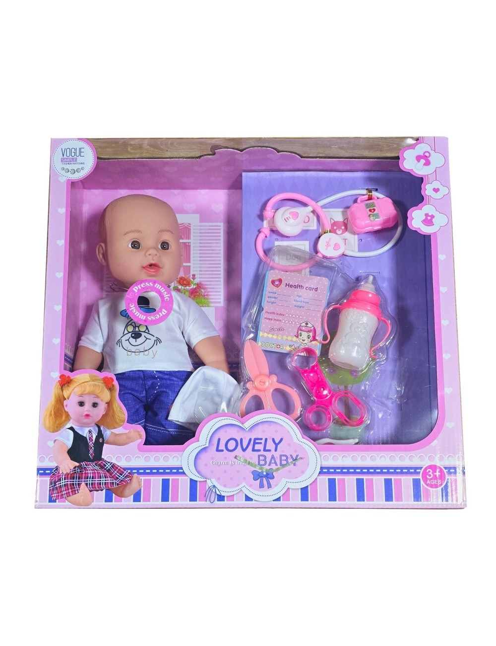 Este adorable muñeco bebote viene acompañado de un set de instrumentos médicos, que incluye un estetoscopio, una tijera y un tetero de juguete, permitiendo a los niños jugar a ser doctores mientras cuidan de su pequeño paciente. Este set es perfecto para estimular el juego imaginativo y desarrollar habilidades de cuidado y empatía en los más pequeños.