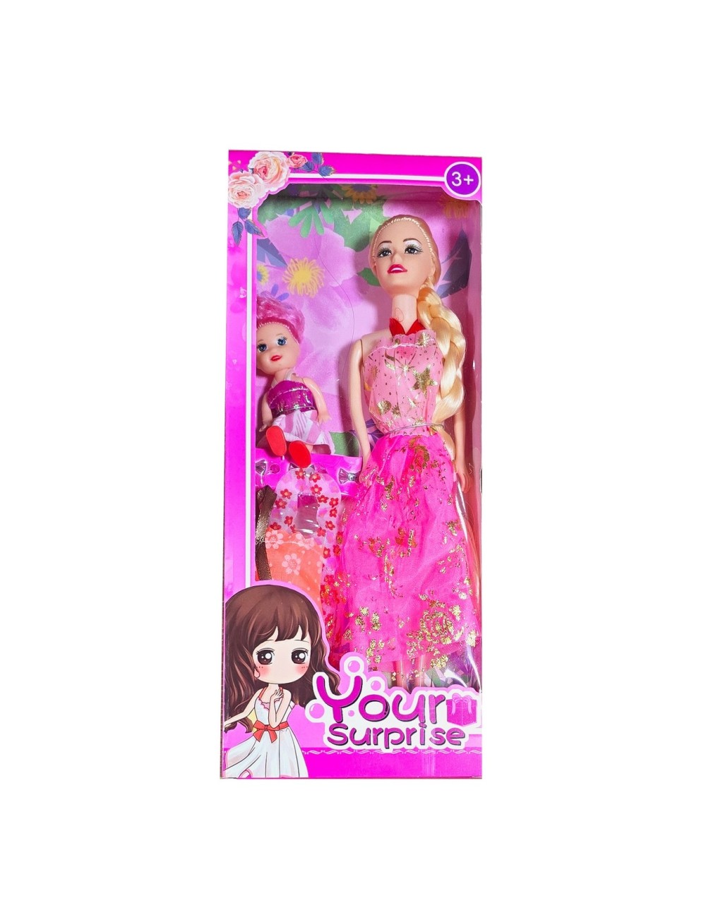 Esta muñeca viene con un elegante vestido y varios vestidos adicionales para cambiar su estilo en cualquier momento, acompañada de una muñeca mini que complementa el juego y añade un toque de ternura, permitiendo crear historias llenas de diversión y creatividad.